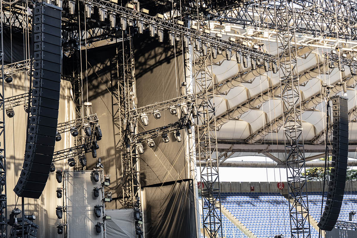Lucio Boiardi Serri of the TT+ Audio team, assisted by his colleague Emanuele Morlini, describes the audio system, "We have 42 GTX line array systems divided into 4 main / side line arrays and 48 TTS 56-A subwoofers in vertical position, and a stack of 3 with the center sub facing the stage in a cardioid configuration. The constant distribution of low frequencies on the stadium is managed through the "curves" function integrated in RDNet, which allows optimal coverage of the venue. This includes the lateral extremes, without having a too evident sum in the center,” explains Serri.