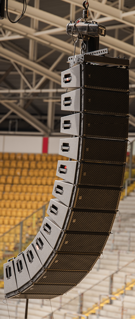 100 GTX 10 line array modules (72 flown, 28 ground-stacked and as nearfills);
