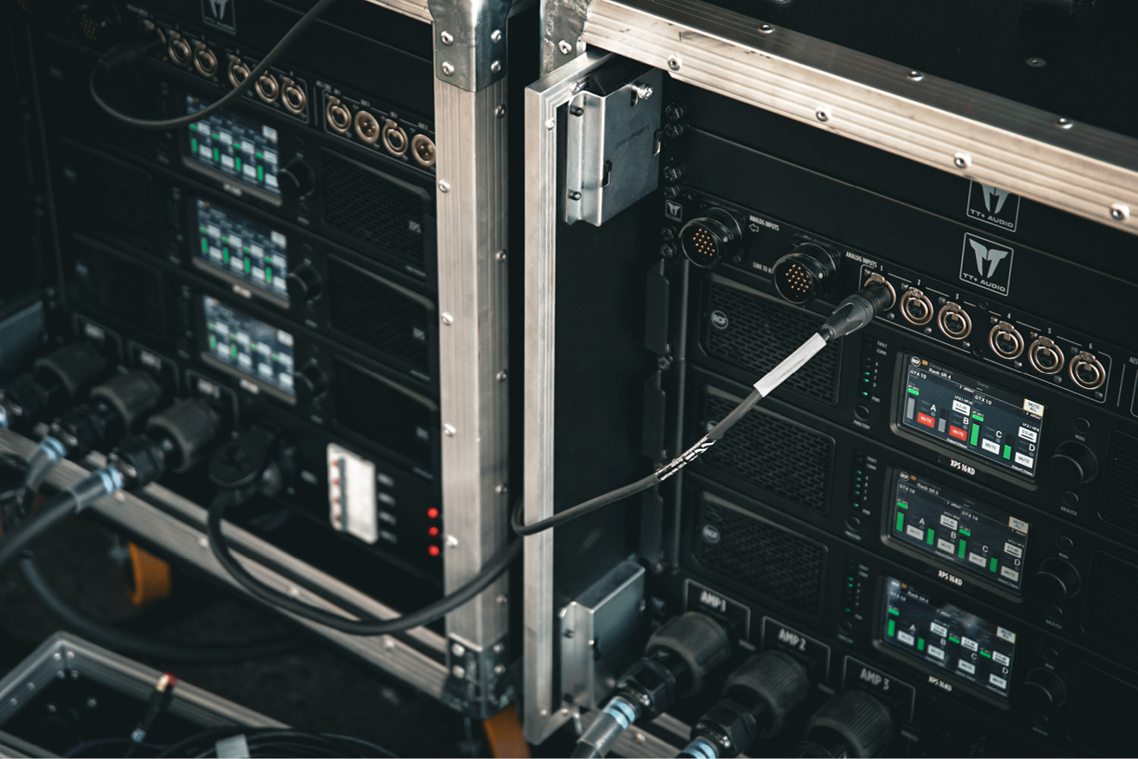 “The Main Stage was equipped with [24] TT+ Audio GTX 10 and [18] TT+ Audio GTS 29 subwoofers, including eight flown units, ensuring uniform sound coverage over 55 meters without delay towers. The system design effectively minimized reflections from the hangar walls and allowed easy adaptation when the hangar doors were open,” Scholz explains. XPS 16K amplifiers powered all TT+ Audio modules.